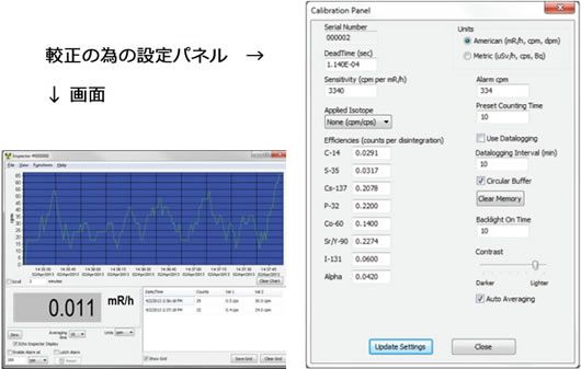 ・確認画面で様々な単位で確認可能。(mR/hr、μSv/hr、cpm、cps、)