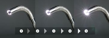 ∅6.9mmの先端部には超高輝度白色LED4灯を内蔵。OFFHIGHまで5段階の光量調節が可能で、被写体や撮影状況に合わせ最適な明るさを設定して観察できます。