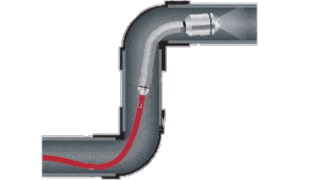 90°エルボ部2箇所の通過が可能です (管内の状態による)