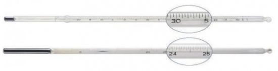 水銀球の下端から浸線までの距離58~62mmいずれも全長280~300mm、径5.7~6.3mmで、すべて日本計量振興協会の試験成績書が付いております。 校正書類の発行可(有償)