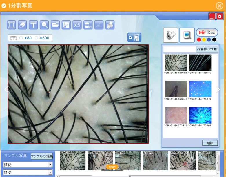 美容マイクロスコープは、サンプル写真やコメントの編集も可能です。